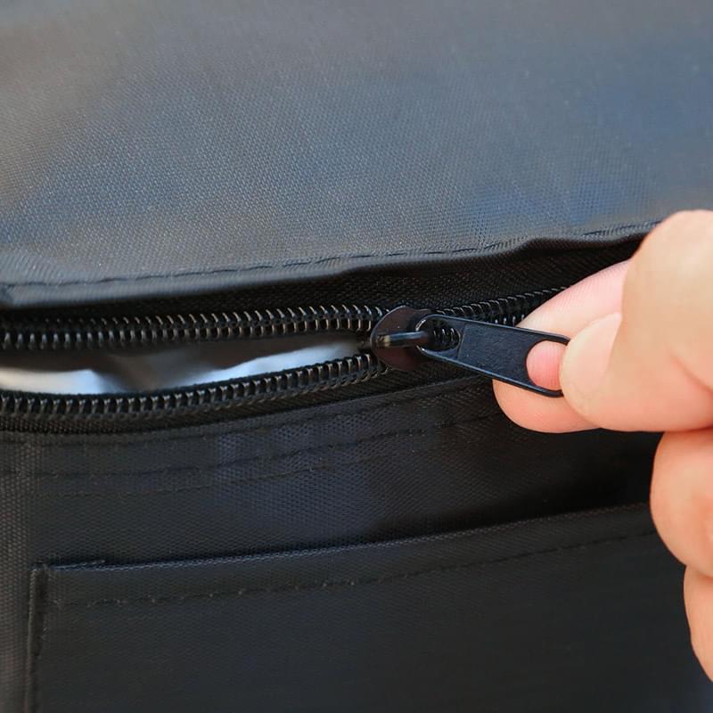 • Features a three-sided top zipper closure.