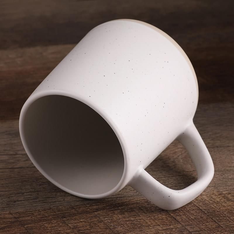 Bring a rustic, modern twist to every sip with the 13.5 oz. Speckled Outward Taper Ceramic Mug! Its unique outward-tapered shape sets it apart from standard mugs, while the speckled exterior gives it a cozy, campfire-inspired vibe. With a sturdy clay base and vibrant interior colors, this generous mug is perfect for coffee, tea, or hot cocoa. A stylish, eye-catching choice for home, office, or promotional use that makes every drink feel special.
