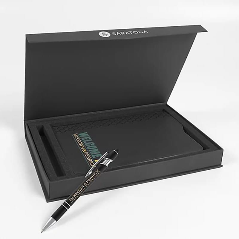 • Your custom message is printed in full color on both the journal and the pen for a lasting impression