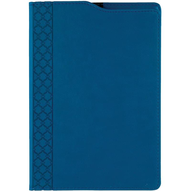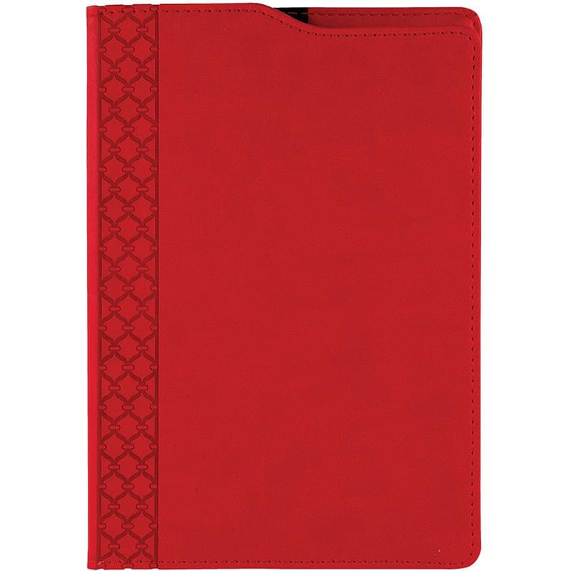 • This hard cover journal features a soft feeling faux leather cover with a striking tone-on-tone décor with a pen slot at top