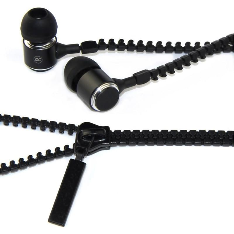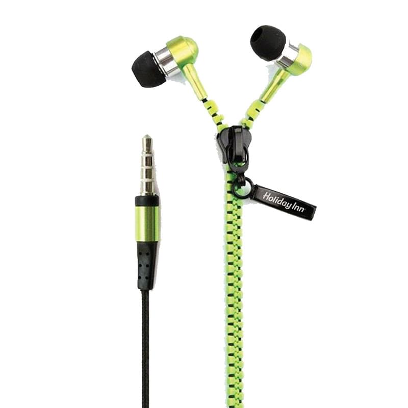 Zipper ear buds with spot color logo on bud in full color blister packaging.