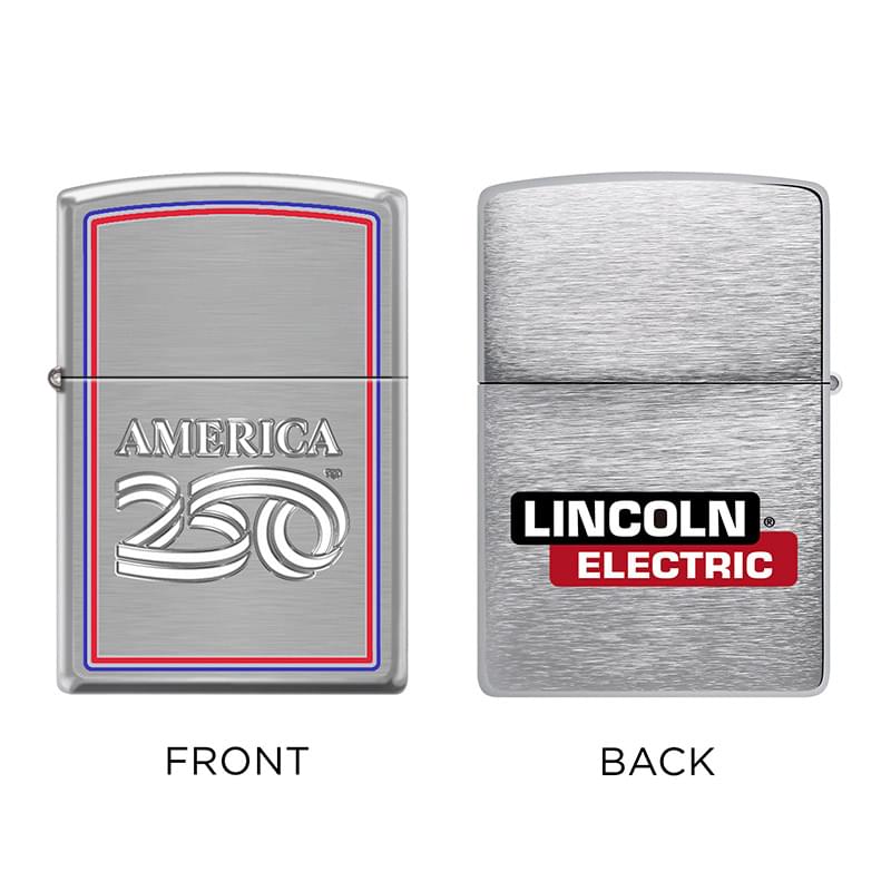 On July 4, 2026, our nation commemorates the 250th anniversary of the founding of the United States. ZIPPO & America250 have joined together in celebration! This special edition Brushed Chrome lighter features an officially licensed America250 design. Add your logo to the top or back of this lighter with vibrant full-color printing. Backed by Zippo’s Lifetime Guarantee. Made in USA. Packaged in a gift box. Lighter fluid not included due to shipping restrictions.
