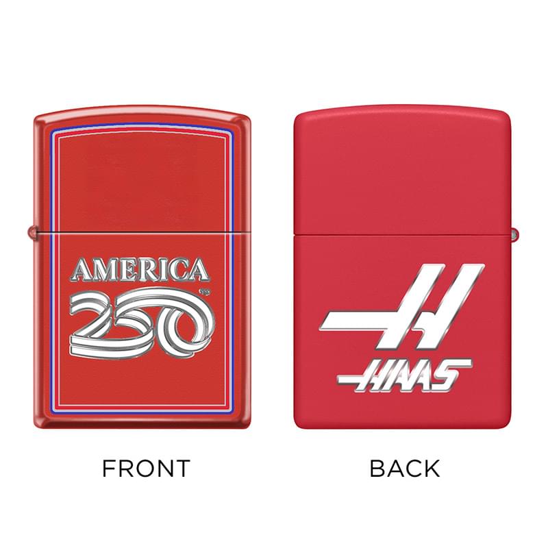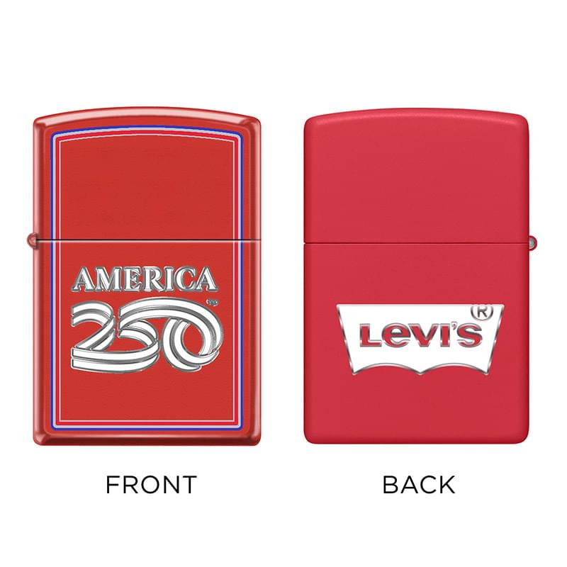 On July 4, 2026, our nation commemorates the 250th anniversary of the founding of the United States. ZIPPO & America250 have joined together in celebration! This special edition Red Matte finish lighter features an officially licensed America250 design. Add your logo to the top or back of this lighter with vibrant full-color printing. Backed by Zippo’s Lifetime Guarantee. Made in USA. Packaged in a gift box. Lighter fluid not included due to shipping restrictions.