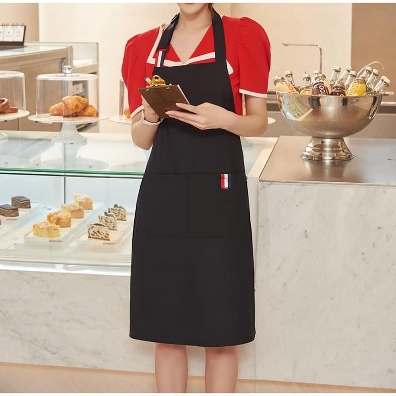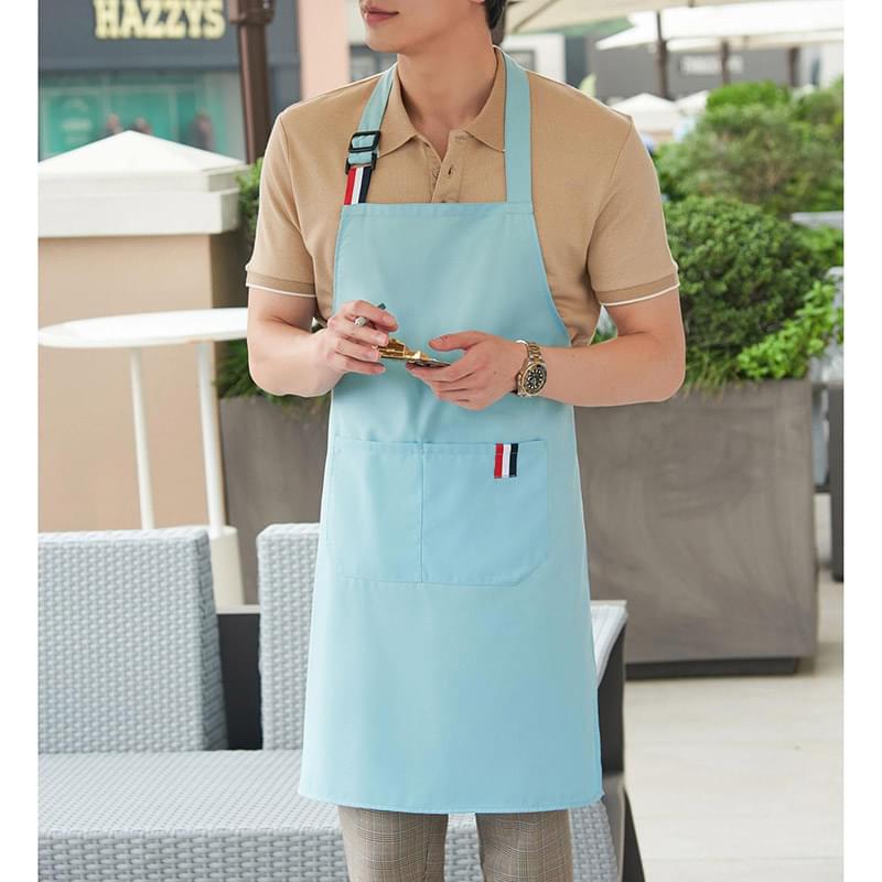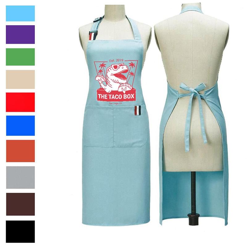Serge Kitchen Aprons w/ Adjustable Straps & 2 front pockets. This trendy adjustable apron is made of Serge fabric which is antifouling, air permeable & oil and dirt-proof in nature. Measuring 31.5"L x 24.8"W with 20.5" straps, this kitchen apron also features tri-color accents & 2 front pockets measuring 6"W x 8"H . With a custom screen print area of 8"x8", ideal for maximum brand exposure, this kitchen apron also features optional embroidery and heat transfer imprinting.