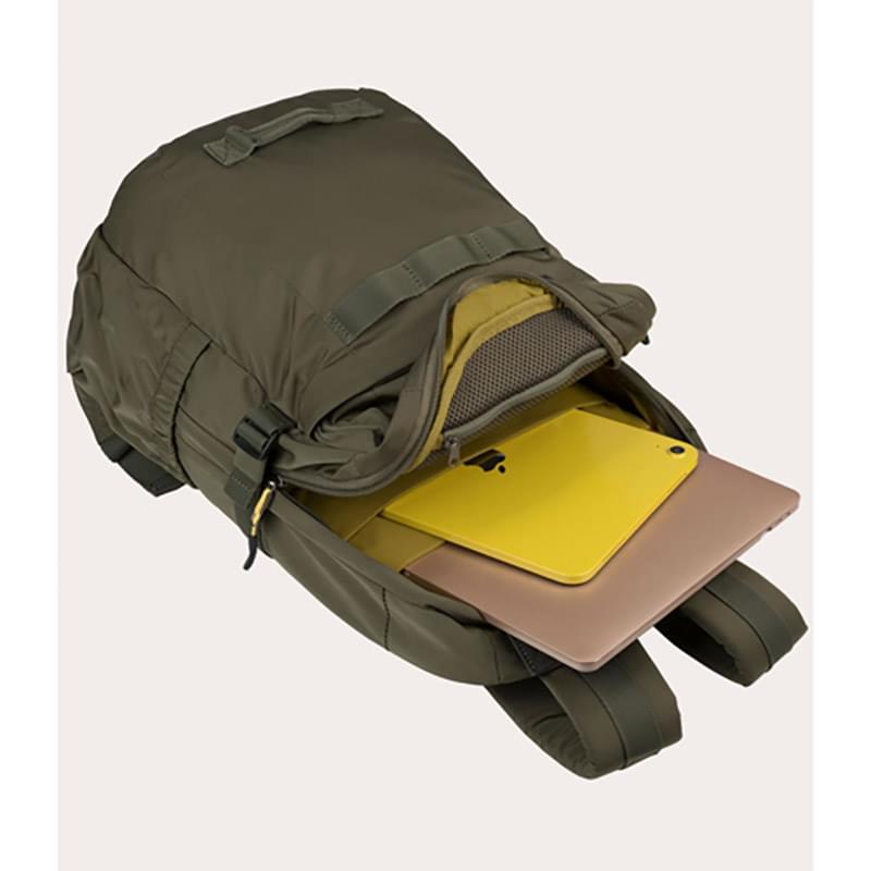 The TUCANO® - Italy BAND Recycled Modern Sporty Business Backpack, designed for laptops up to 15.6" and MacBook Pro 16", offers ample space and a sporty design made from recycled plastic with webbing accents on the front panel. It features a padded pocket for laptops or MacBooks, a double compartment separated by a zipper, and two roomy front pockets for accessories, ensuring easy organization. Embrace the fusion of style and functionality with Tucano's Italian sporty business backpack, elevating your outfit with Italian sophistication and impeccable quality.