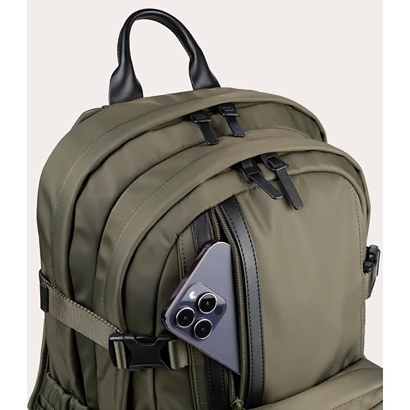 Embrace the fusion of style and functionality with the TUCANO® - Italy DESERT PREMIUM Recycled Executive Backpack. Made of recycled nylon with leather accents, this sporty business backpack features a spacious central compartment with double protective pockets for 15.6" laptops, MacBooks up to 16", and tablets. The double compartment design, separated by zippers, provides ample and well-organized spaces, complemented by two roomy front pockets for accessories. Enhanced with an ergonomic back, a security pocket, and a convenient trolley strap, this backpack elevates your outfit with a touch of Italian sophistication and impeccable quality, setting Tucano apart as one of the best Italian sporty business backpack brands in the market.