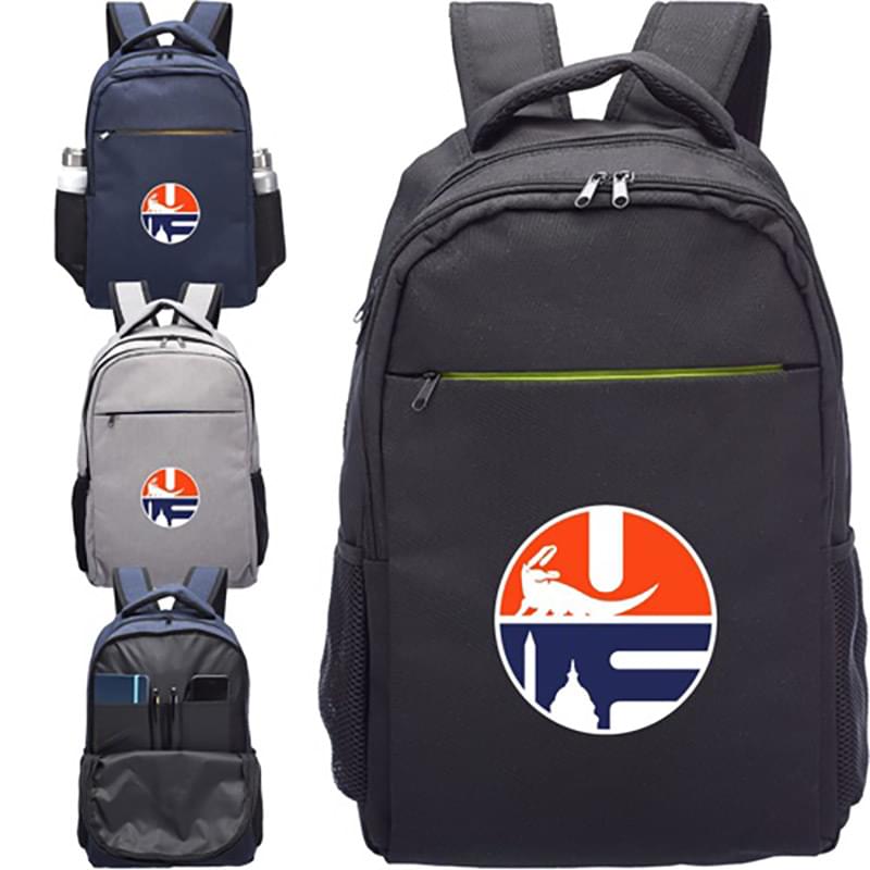 Vintage Bag Laptop Backpack w/ mesh pockets on both sides, front zippered pocket, carrying handle, and adjustable straps. Made of soft 600D Polyester, These trendy Backpack measures 17.75"L x 12"W x 5"D and is made of 600D Polyester. These Classic laptop backpack features two side Mesh Pockets and adjustable shoulder straps as well as Carrying handles. With a large imprint area of 4.00"W x 4.00"H, These fashionable backpacks also features mesh side pockets, adjustable straps, stores laptop in the padded laptop compartment. Give these away in your next marketing campaign and advertise your brand like never before!