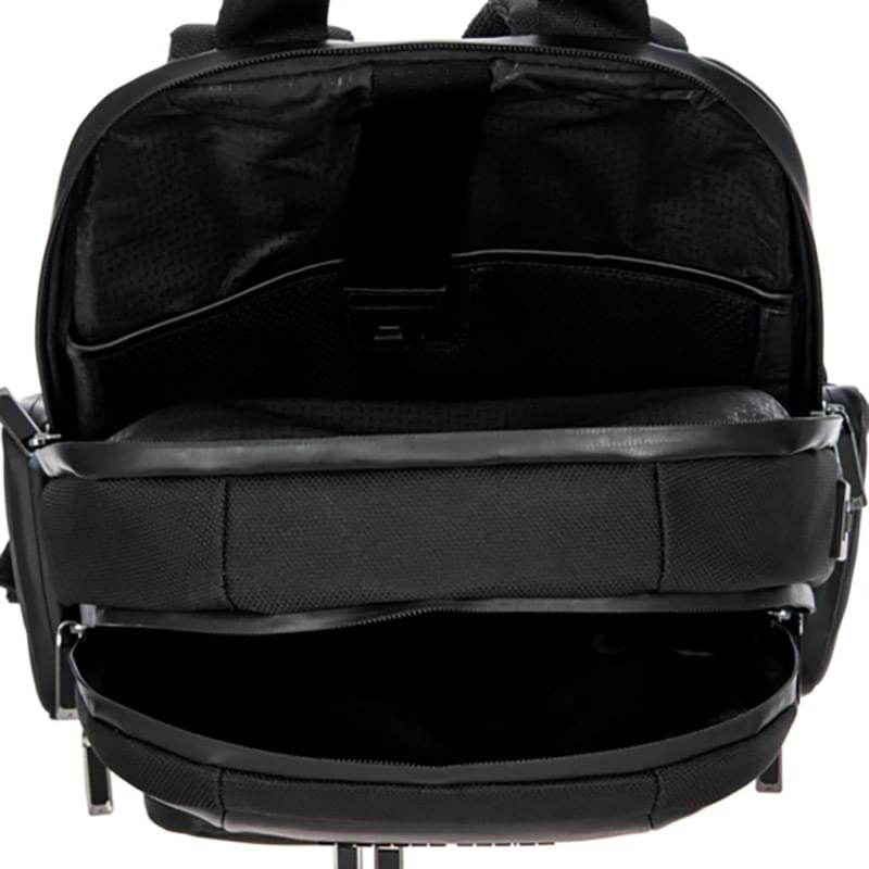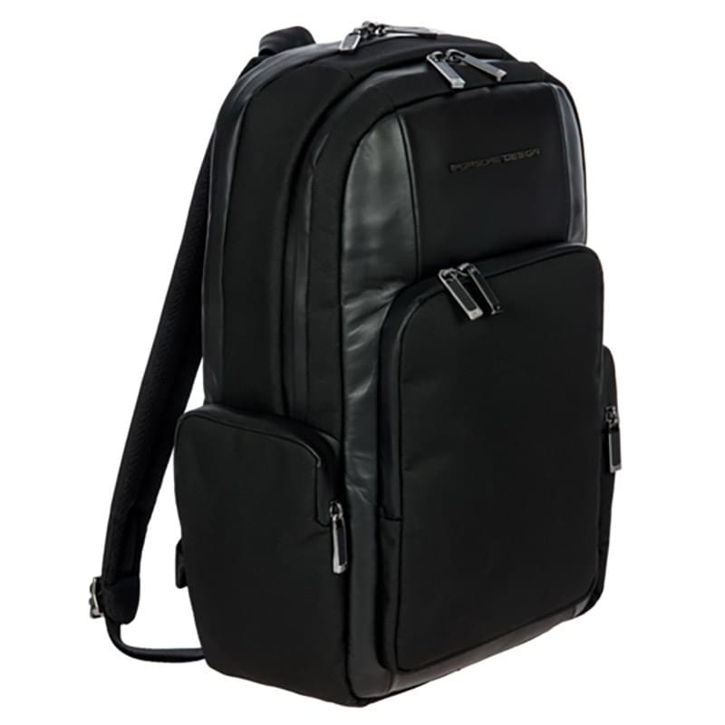 The BRIC'S® Porsche Design Nylon Roadster M1 Backpack is designed for high-demanding professionals, combining functionality with refined details. Made from water-repellent nylon and soft leather, it offers a sleek, modern look. The main compartment includes a pocket for a 14" notebook and a zippered pocket, while the front compartment features a business organizer. The padded back, trolley link, and security pocket ensure comfort and security while traveling. Additional features include padded, adjustable shoulder straps, a USB plug, and an integrated ID tag for convenience.