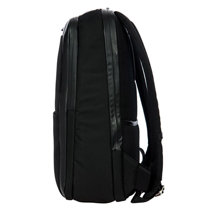 The BRIC'S® Porsche Design Nylon Roadster S1 Backpack is crafted for high-demand professionals, offering a blend of refined details and optimal functionality. Made from water-repellent nylon with soft leather accents, it boasts a sleek, modern design. The main compartment features a pocket for notebooks up to 14" and a zippered section. A separate front pocket includes a business organizer. The padded back, trolley link, and security pocket enhance comfort and practicality. Padded, length-adjustable shoulder straps, a USB plug, and an integrated ID tag complete the design for ultimate versatility.