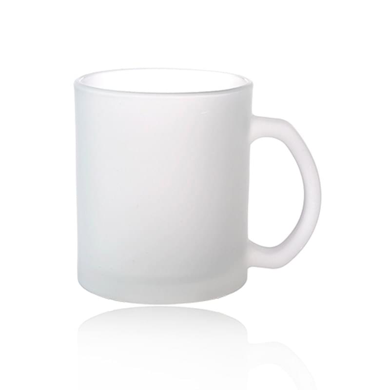 The 11.5 oz. Frosted Glass Coffee Mugs are made from sturdy glass material and designed with a Glossy white exterior. Measuring 4.75" W x 3.75" H, this coffee mug also features a large imprint area of 3" W x 3" H" Wrap ideal for maximum brand exposure.