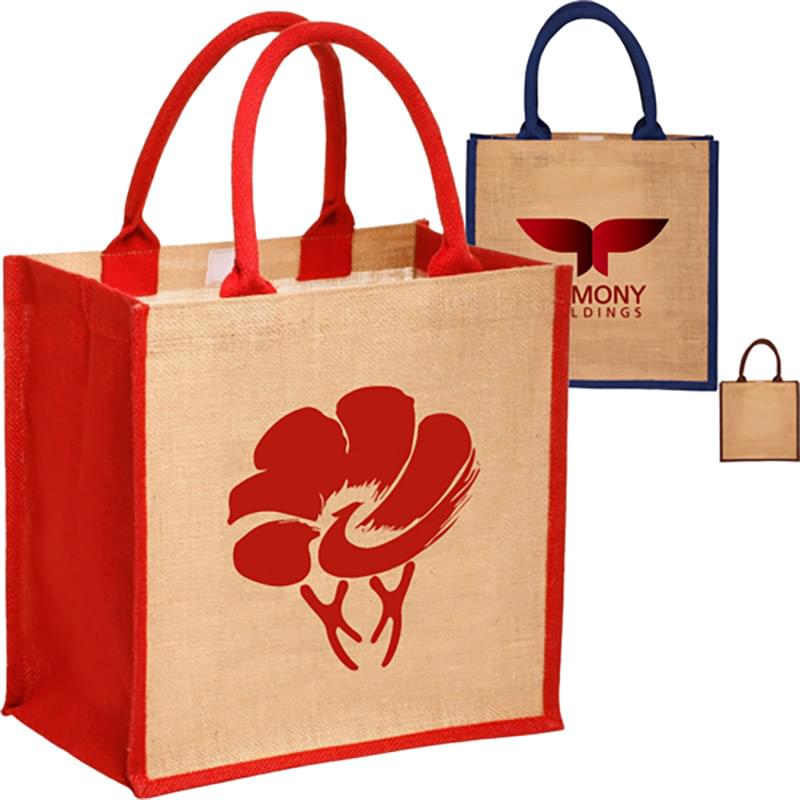 Laminated Jute Bags & Colored Sides and Handles W/ Gusset (12" x 12" x 7")