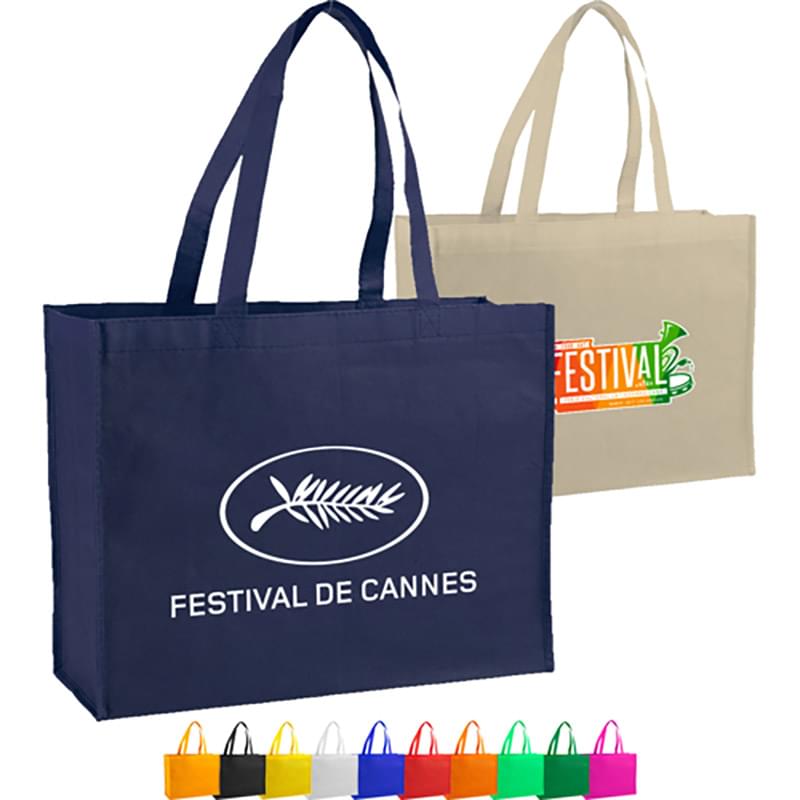 Introducing our Shopping Tote Bag, a reliable and eco-friendly companion for your shopping adventures. Crafted from durable 80 GSM non-woven polypropylene and featuring a gusset, this shopping bag combines strength with convenience. With generous dimensions measuring 16"W x 12"H x 6"D, it provides ample space for groceries, retail therapy, or everyday essentials, while the gusset allows it to expand to accommodate bulkier items. The 10"W x 10"H imprint area offers customization options for personal use, promotional purposes, or branding needs. This shopping tote embodies durability, sustainability, and practicality, making it a dependable and planet-conscious choice for those who seek a versatile and eco-friendly shopping companion. Decorated in USA for faster delivery.