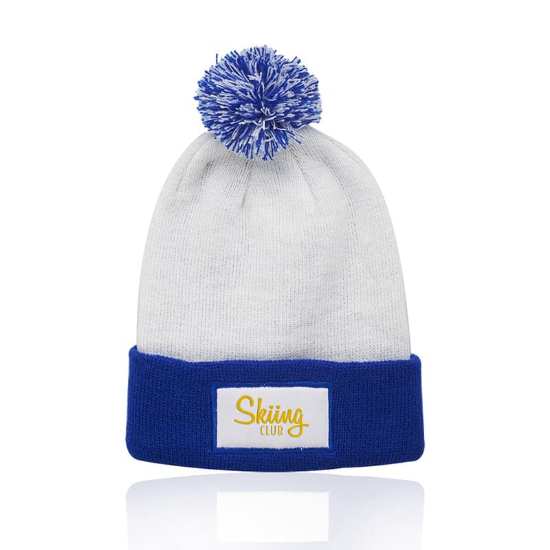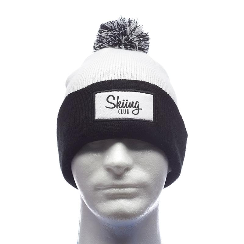 Fuji Two-Tone Patch Pompom Beanies