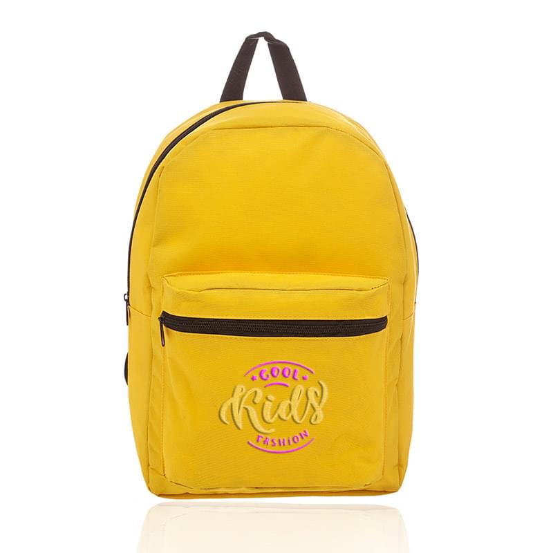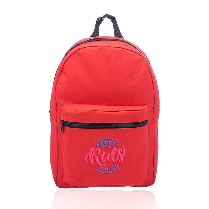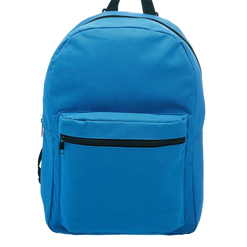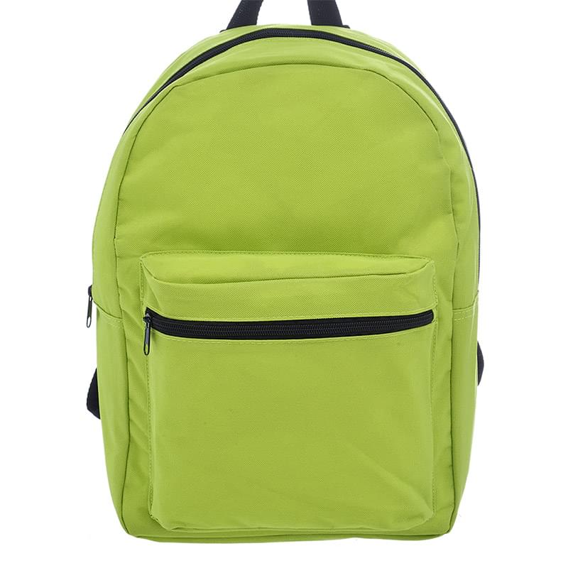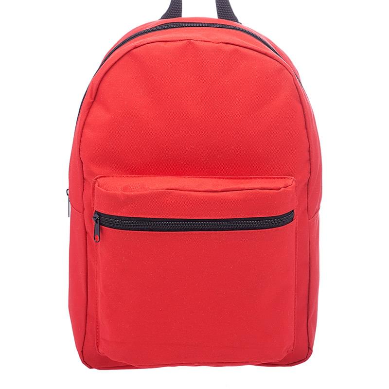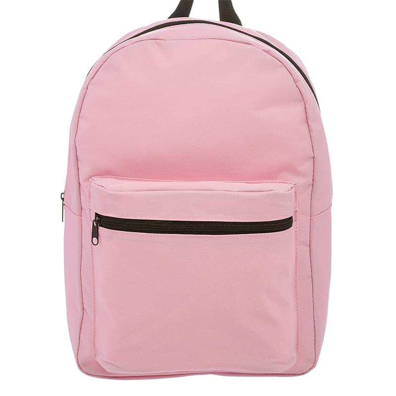 Get a basic backpack on a budget and make a big impact for your brand! This backpack is perfect for everyday use, including back to school, camping trips, traveling and more! It's offered in an assortment of colors, measures 14.5" x 15.25" x 4.50" and is made of polyester. Features include adjustable webbing straps, a large zippered front pocket and spacious zippered main compartment that can hold books, clothing and other gear. It's also equipped with carry handle. Your