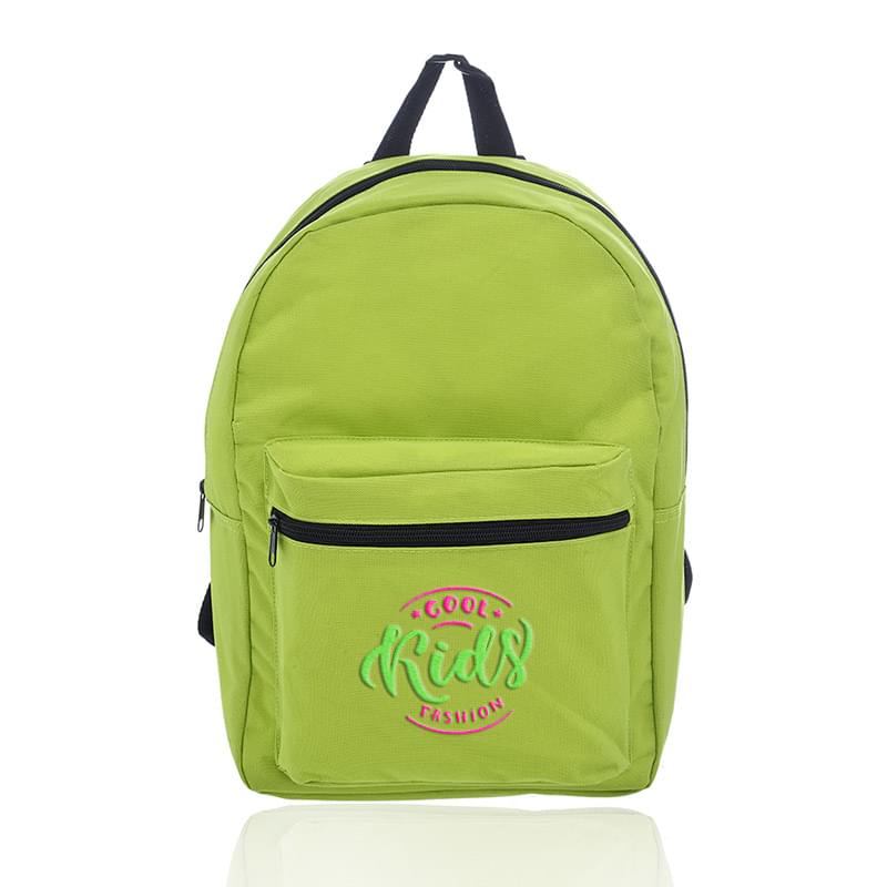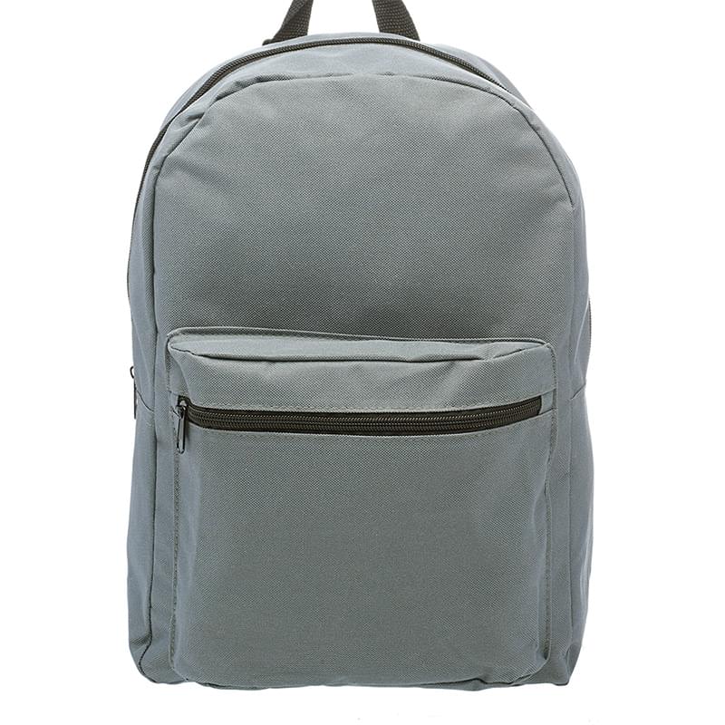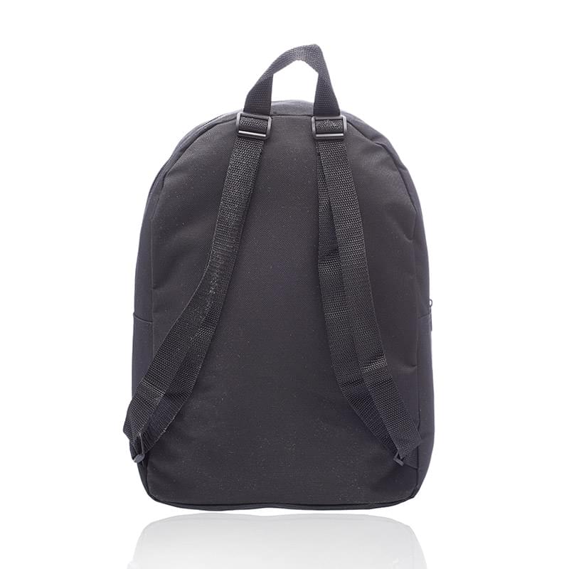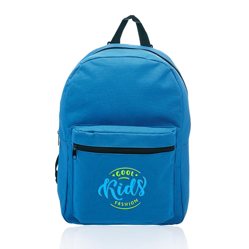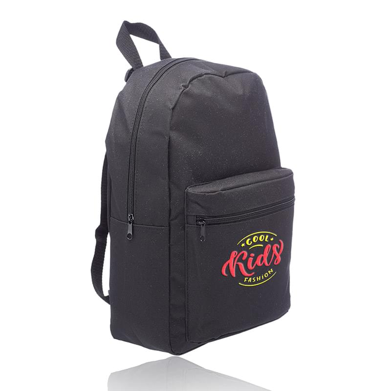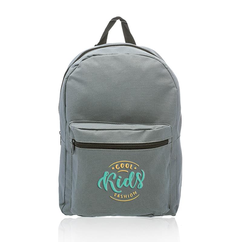 Get a basic backpack on a budget and make a big impact for your brand! This backpack is perfect for everyday use, including back to school, camping trips, traveling and more! It's offered in an assortment of colors, measures 14.5" x 15.25" x 4.50" and is made of polyester. Features include adjustable webbing straps, a large zippered front pocket and spacious zippered main compartment that can hold books, clothing and other gear. It's also equipped with carry handle. Your