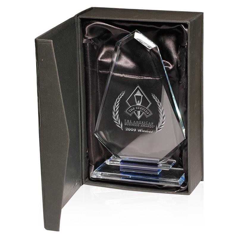 Cut right to the heart of the matter when you acknowledge the accomplishments of your employees with these Spear Glass Trophies. These exquisite blue and clear awards have a 2.25" x 3" imprint area that you can customize using laser engraving or you can order them blank. The glass trophies measure 9" H x 5.75" W x 0.4" thick and will be the envy of the office. They are perfect for your top sales people, employee of the month and any other special achievements in the company. Show your employees that you value everything they bring to the business!