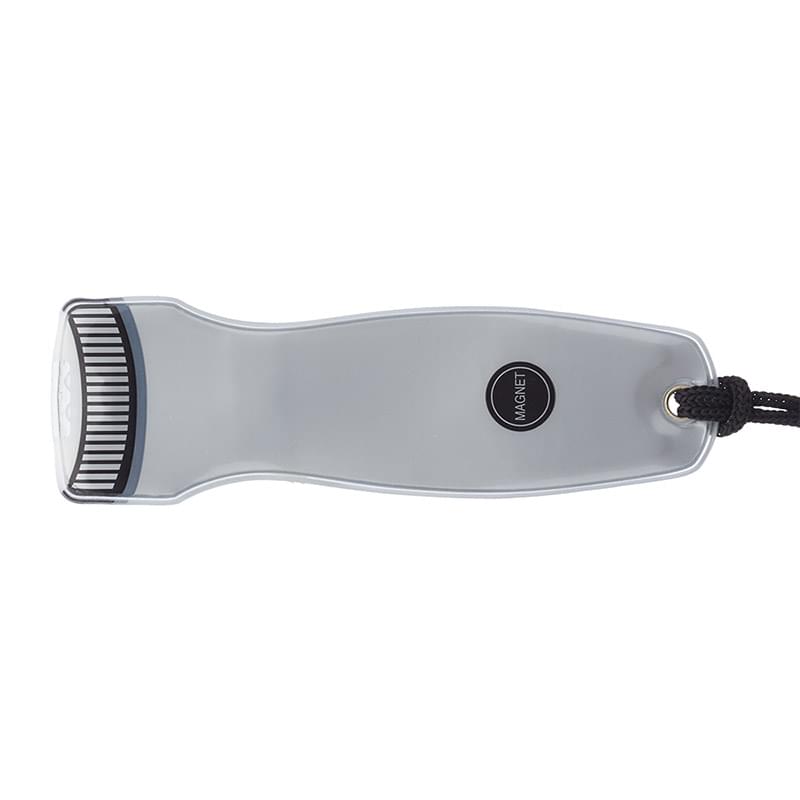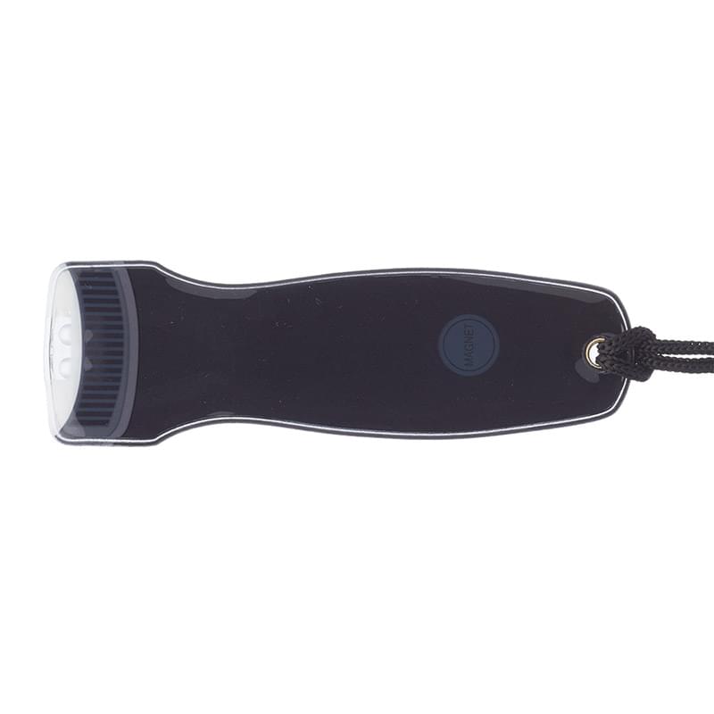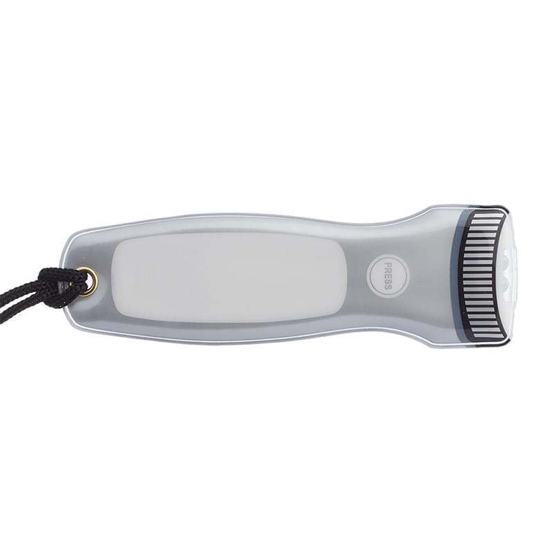 Shine a light on your brand with this handy magnetic flashlight! The flat design makes it easy to store in drawers, tool boxes or shelves because it won't roll or take up much space. Each one features LED lights, included battery, a press on/off button and black polyester carrying strap. Great for promotional use, you can add an imprinted brand name, logo or marketing message using full color printing. Great for handing out at tradeshows, conventions, hardware stores, safety expos and much more!