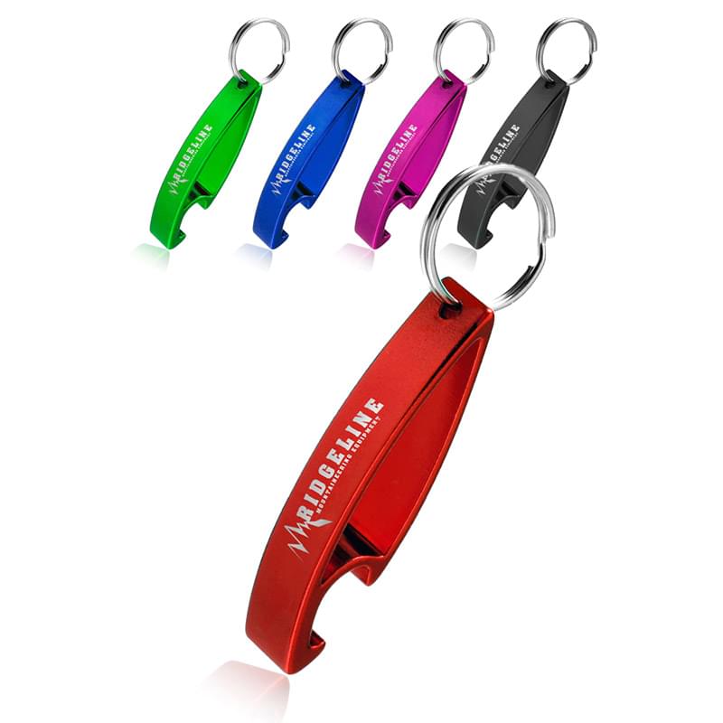 Give the Aluminum Bottle Opener Keychain away as an open invitation for your new and potential clients to get to know your company. With five different product colors and a laser engraved optional imprint, this is the perfect promotional item for real estate offices, banks, car dealerships and schools. Help your customers spread the word about your brand while they are out and about. This keychain does not function as a can opener. Closed doors aren't nearly as inviting as your smile and a gift!