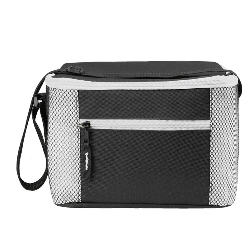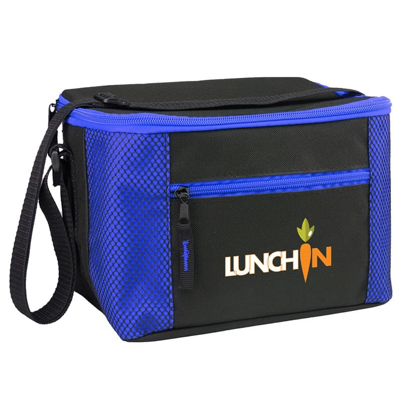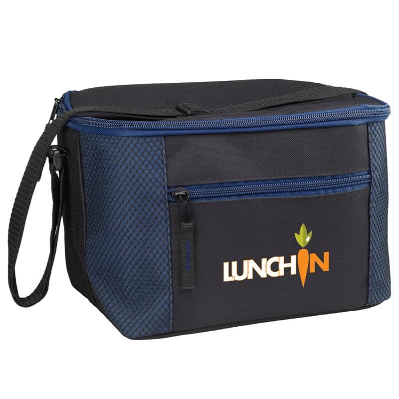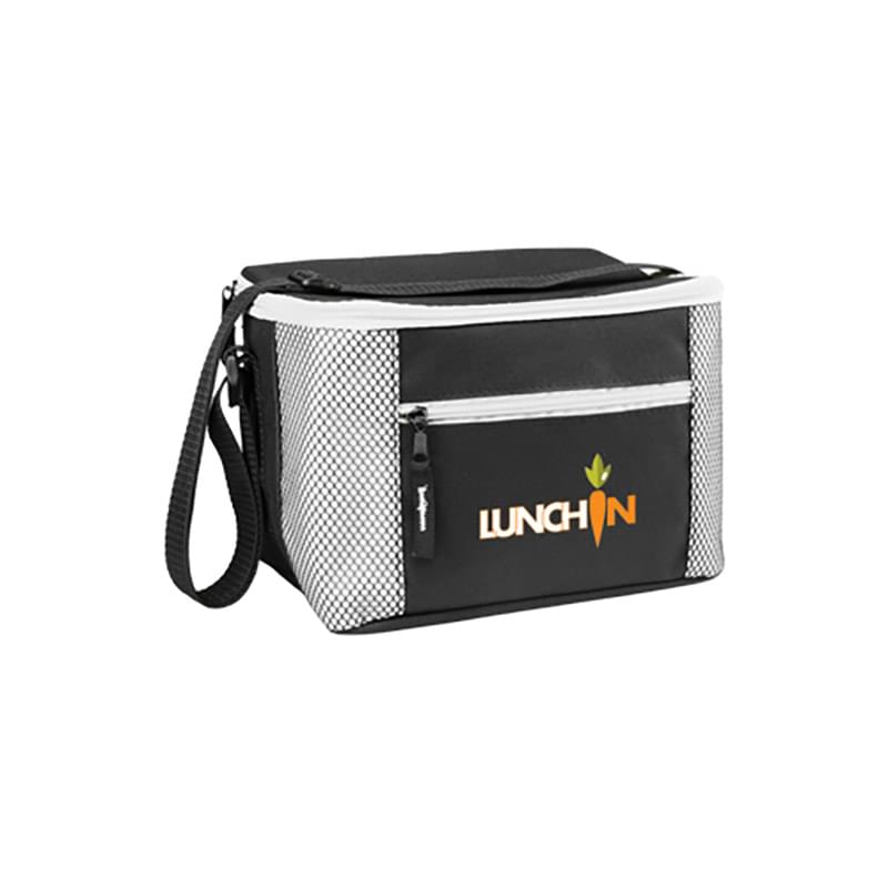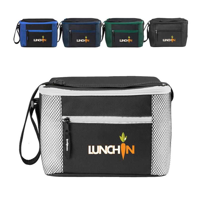 Satisfy their appetite with this "cool" lunch bag! Designed with 2mm aluminum foil insulation, this lunch bag measures 9" x 8" x 5" and is offered in an assortment of stylish colors. Features include a top zipper closure, front open pocket with zipper and a 11" reinforced strap for a comfortable carry. For best results, hand wash is recommended. Customize it with a logo or company name and use it as your next promotional giveaway. Make brown bagged lunches a thing of the past!