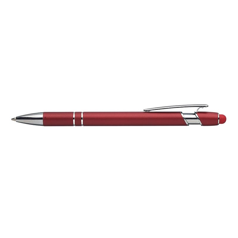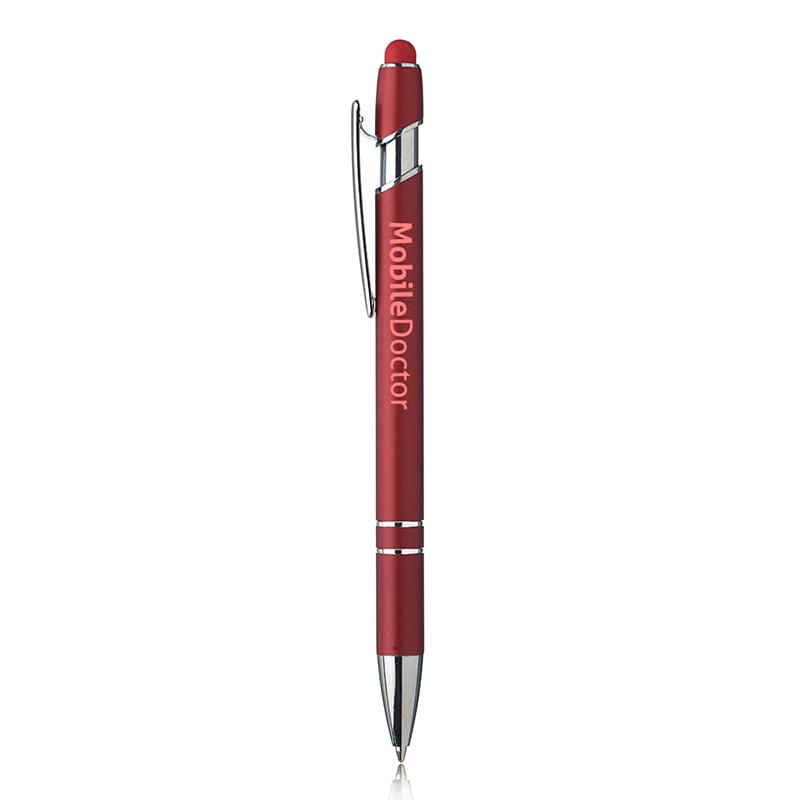 Check out this dual-threat delight! Seamlessly transition between writing notes and navigating your tablet with this pen that features an aluminum barrel with rubbing coating, chrome trim, stylus tip and black ink and a metal ballpoint with 1MM tip for a smooth writing experience. The barrel is offered in an assortment of colors and provides plenty of space to add a brand name, logo or message.