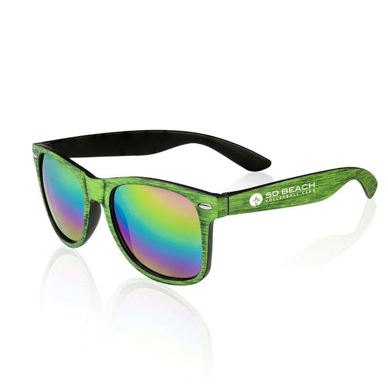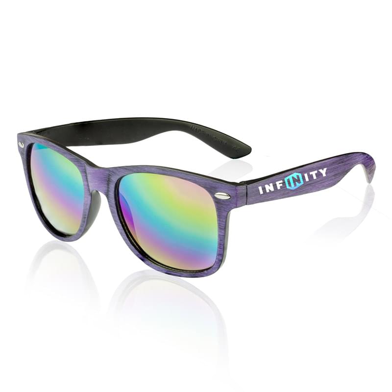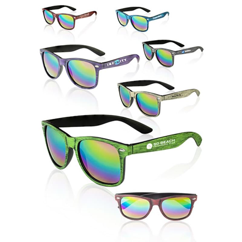 Interest people with what else you have in store when you give out these Orion sunglasses! They're made of polycarbonate material and uniquely designed with a matte woodgrain finish that's sure to capture plenty of attention. They also sport mirrored reflector lenses that provide UV 400 protection to shield eyes from the sun's harmful rays. Imprint this with a silkscreen of your logo and get more customers to put you first on their list!