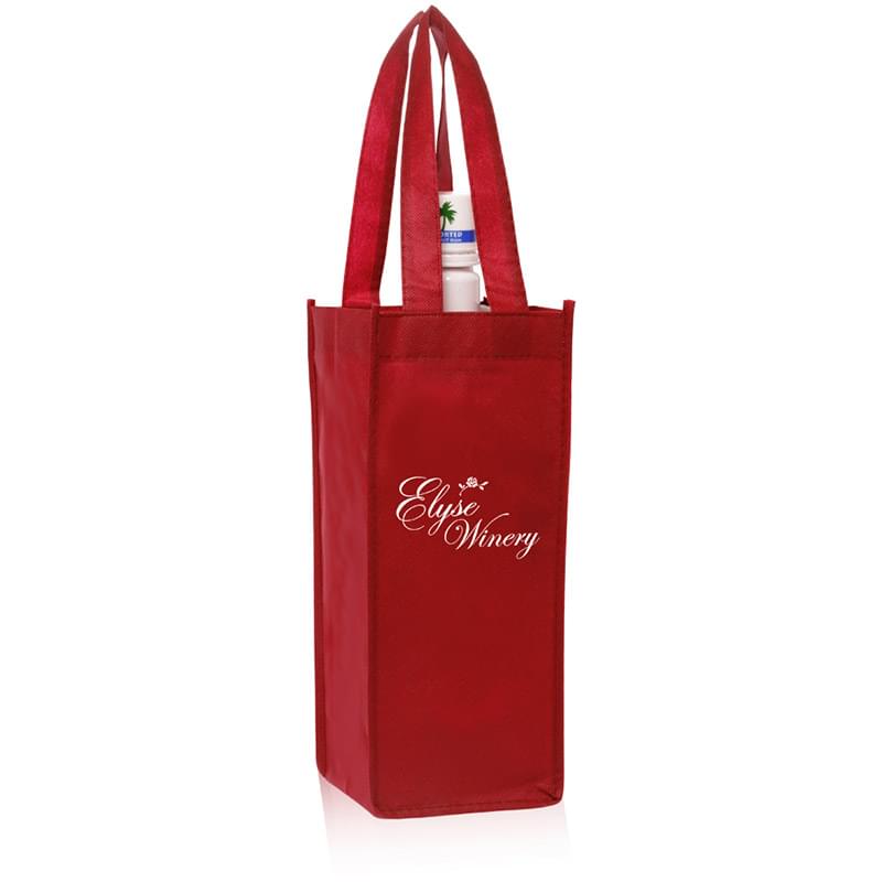 Wine and dine your clients with this non-woven vineyard one bottle wine bag! This handy bag is made of non-woven polypropylene and makes carrying a bottle along with you much easier. Whether you're bringing a gift for the host of a get-together, having a picnic in the park, or bringing a bottle along to your dinner reservation, you will be thrilled to have this bag with you. Easy to carry and available in an assortment of colors, this wine bag is a significant upgrade from the paper bag that comes with the bottle. Order a minimum of 50 pieces for a product that will carry your brand to new places!
