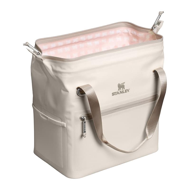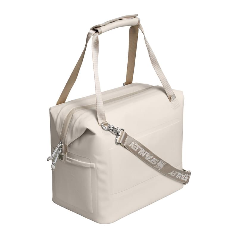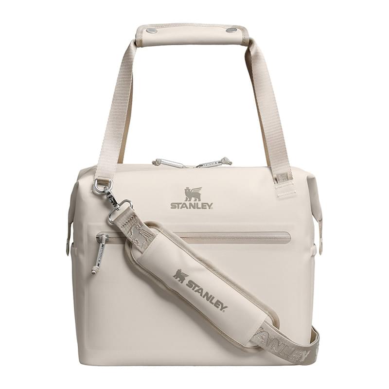 The Stanley All Day Julienne Midi 20 Can Cooler is made from 100% recycled polyester to make dining outside more sustainable. These vibrant coolers with contrast details, and a patterned winged bear liner, hold all you need for picnic dates, city hikes, and weeknights with friends. Head outside to soak up the fun and recharge. The unique “doctor’s bag� hinge top pops open to help with unpacking. Load up with reusable ice packs, pop it shut and the sturdy zipper keeps things safely stored. The snap-top handles have a comfortable grip, while a zippered pocket protects your valuables. There’s also the option to attach the strap to sling the cooler over your shoulder. From acai bowls to charcuterie, sparkling beverages and wine are ready to be enjoyed. Don’t forget to pack all your favorite snacks and drinks in Stanley style.