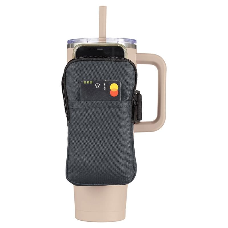 • designed for convenience and style, this versatile pouch securely wraps around your favorite drinkware, offering a hands-free solution for life's essentials