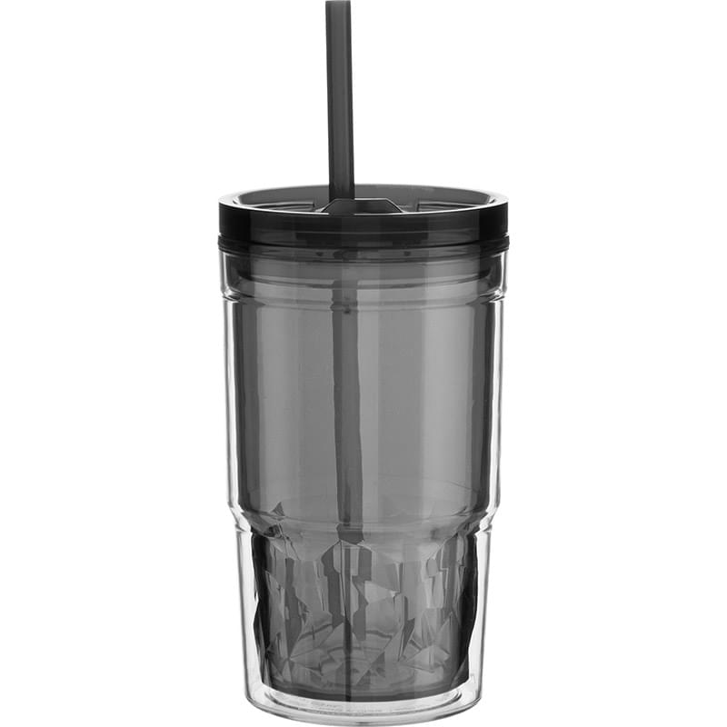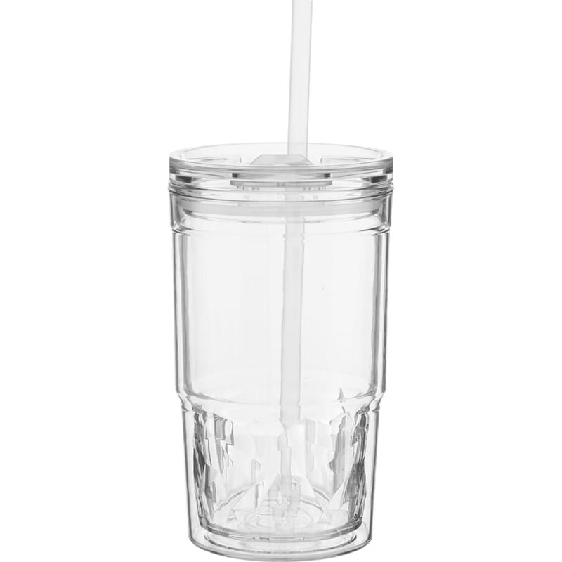 The Clarity 16 oz acrylic tumbler delivers stylish hydration with a playful, colorful design. Its double wall construction features a tinted inner wall that adds visual interest while helping maintain beverage temperature. A tinted push-on lid with matching slider and coordinating soft straw offer versatile sipping options, making it easy to enjoy drinks throughout the day. Ideal for everyday use at home, work, or on the go, this tumbler blends function with eye-catching appeal. Do not microwave. Hand wash recommended.