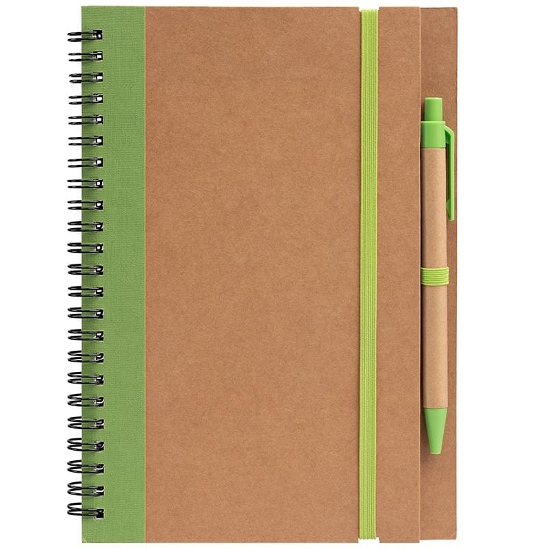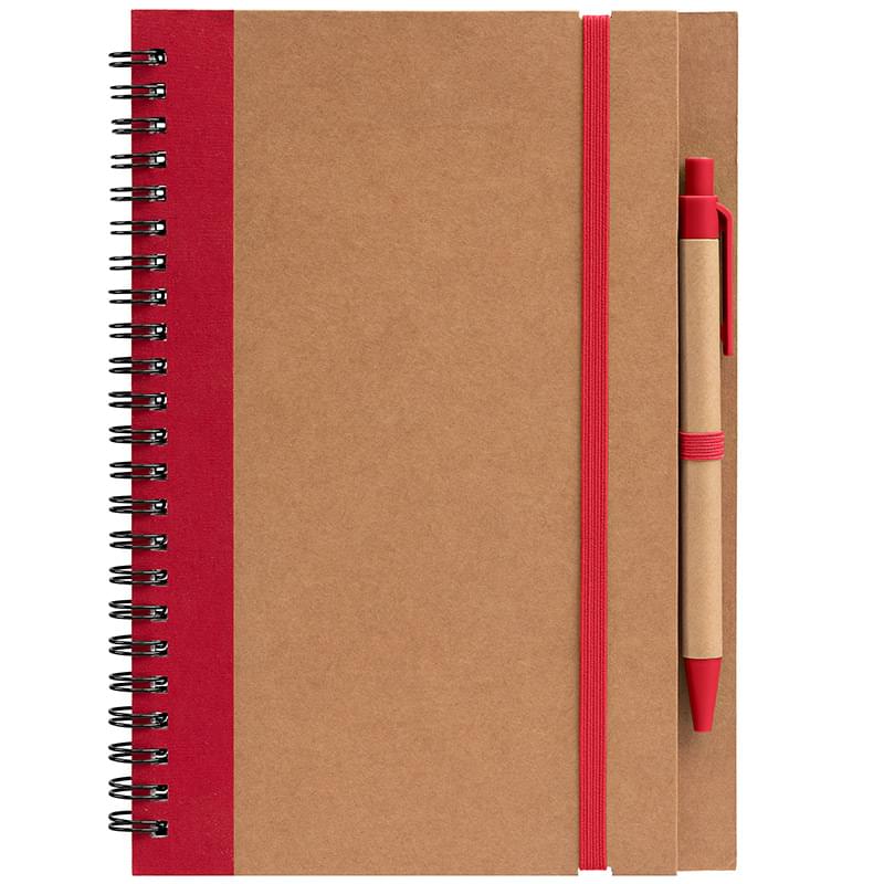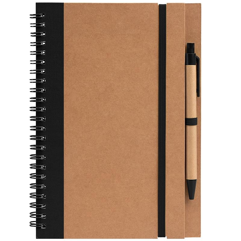 Kraft Hard Cover Spiral Notebook with Pen - ColorJet