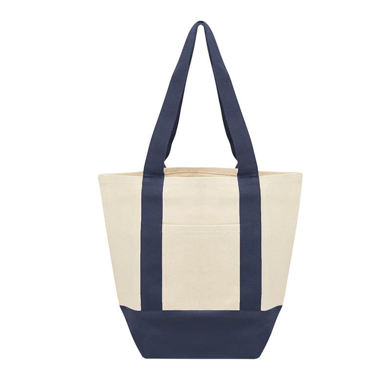Made Of Combo: 10 Oz. 70% Recycled Cotton Canvas And 30% Polyester | Front Pocket | 18" Handles | Spot Clean/Air Dry