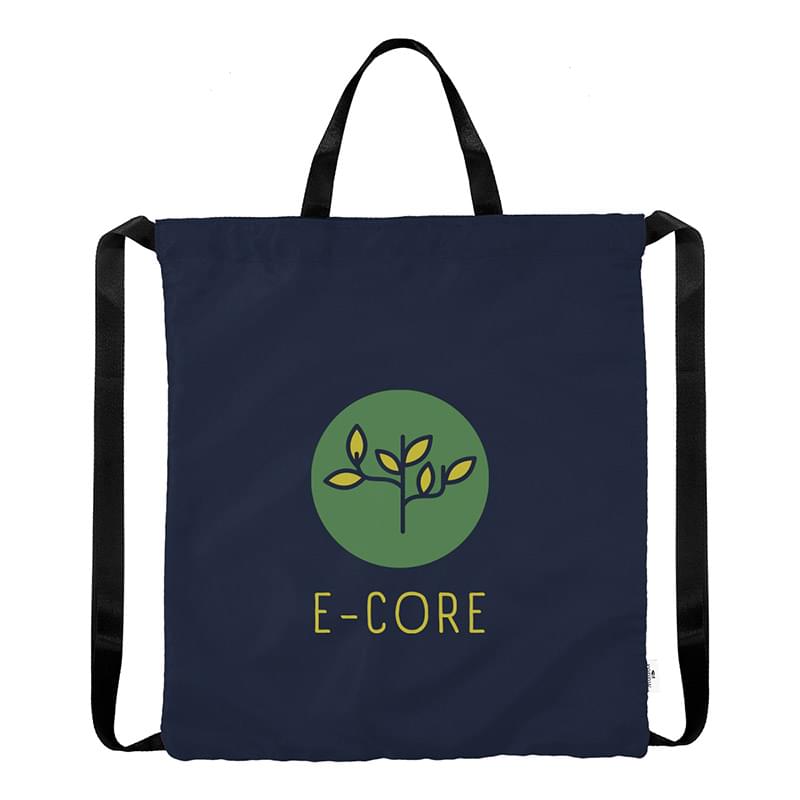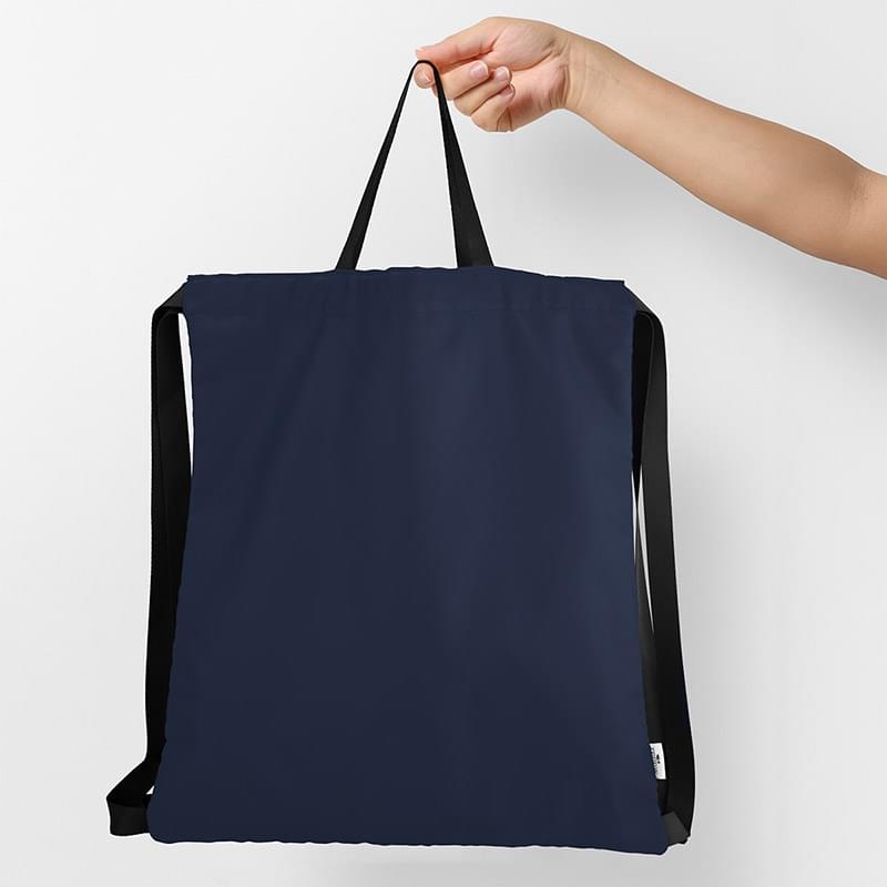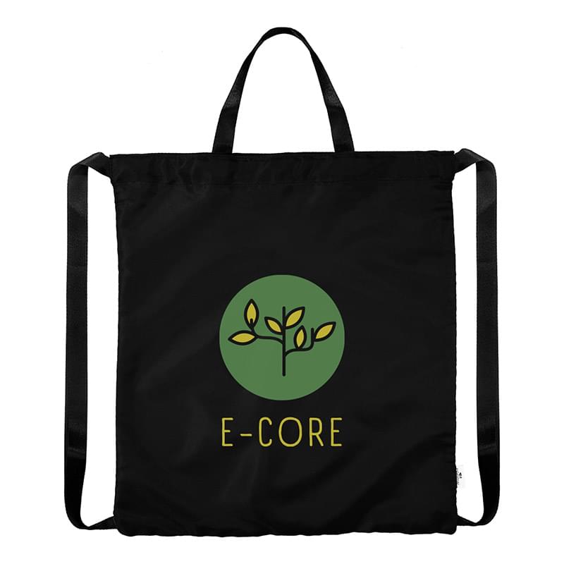 Made Of 230D rPET Polyester With PU Backing | Made From Post Consumer Recycled Materials | Recycled Polyester (rPET) Is Obtained By Melting Down Existing Plastic Bottles And Other Material Sources To Create New Polyester Fiber | Handle, Shoulder, Inside Binding and Care Label Are Not rPET | Drawstring Closure | Can Be Carried As A Tote Bag Or Worn As A Drawstring Bag | Spot Clean/Air Dry