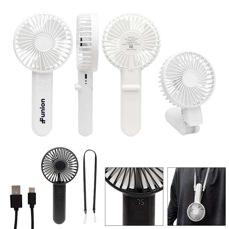 Use As A Handheld Fan Or Bend Arm To Prop Up | 4 Adjustable Speeds Provide 2 ½ To 15 Hours Of Wind | Push Button To Turn On/Off And Change Settings | Wrist Strap For Carrying | Digital Power Level Indicator | Features A Type-C Input (Cord Included) | 1800 mAh Rechargeable Battery And Included