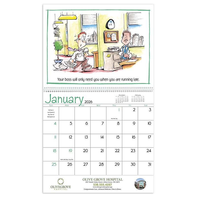 Jim Hunt bring a laughable appreciation to the whims of fate through his art.Add value to your calendar with an extra sheet and/or an Insights backmount for no additional costPixaction Preview included on this product