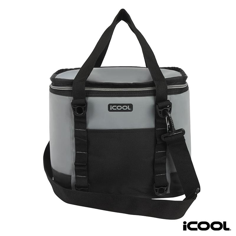 The durable iCOOL® Pinecrest 12-Can Cooler is designed to enhance any adventure, whether in the park or in the woods, in the office or on campus. Crafted with high-quality tarpaulin, the weather-resistant exterior ensures durability and enhanced protection against the elements. Its heat-sealed and leak-resistant tarpaulin lining guarantees worry-free transportation of your food and beverages and the high-density foam insulation provides extended hot or cold temperatures for the contents. It features a front slip pocket for easy-access personal items, T-Bar zip pulls, front side daisy chains and an attached bottle opener on the backside. Carry it with the carry handles or its included 1 3/4" x 52" removable and adjustable shoulder strap. Elevate your lunchtime experience with the Pinecrest 12-Can reliable and versatile cooler. A portion of all proceeds is donated to Shelter to Soldier™, a non-profit organization that rescues dogs to train as service animals for veterans in need.