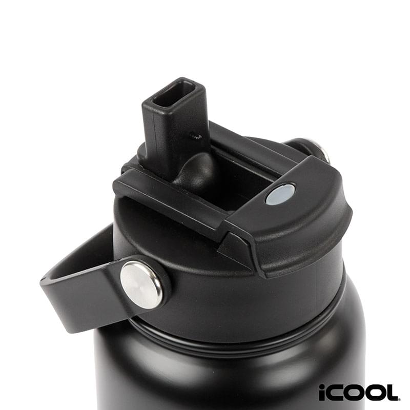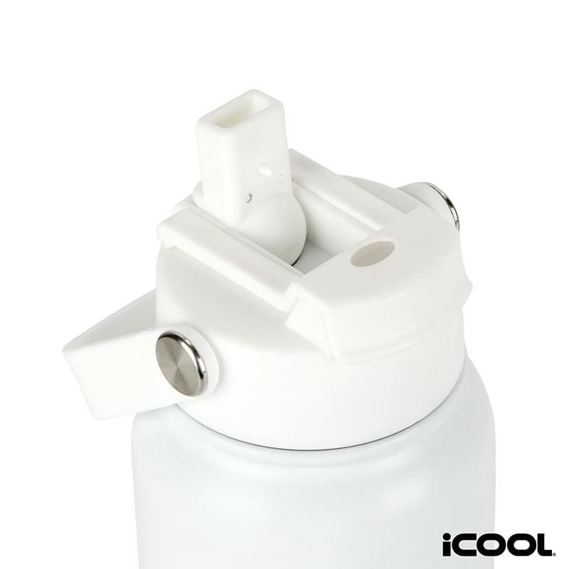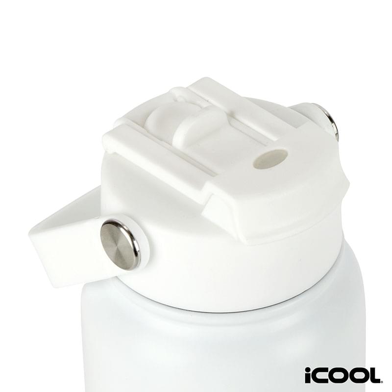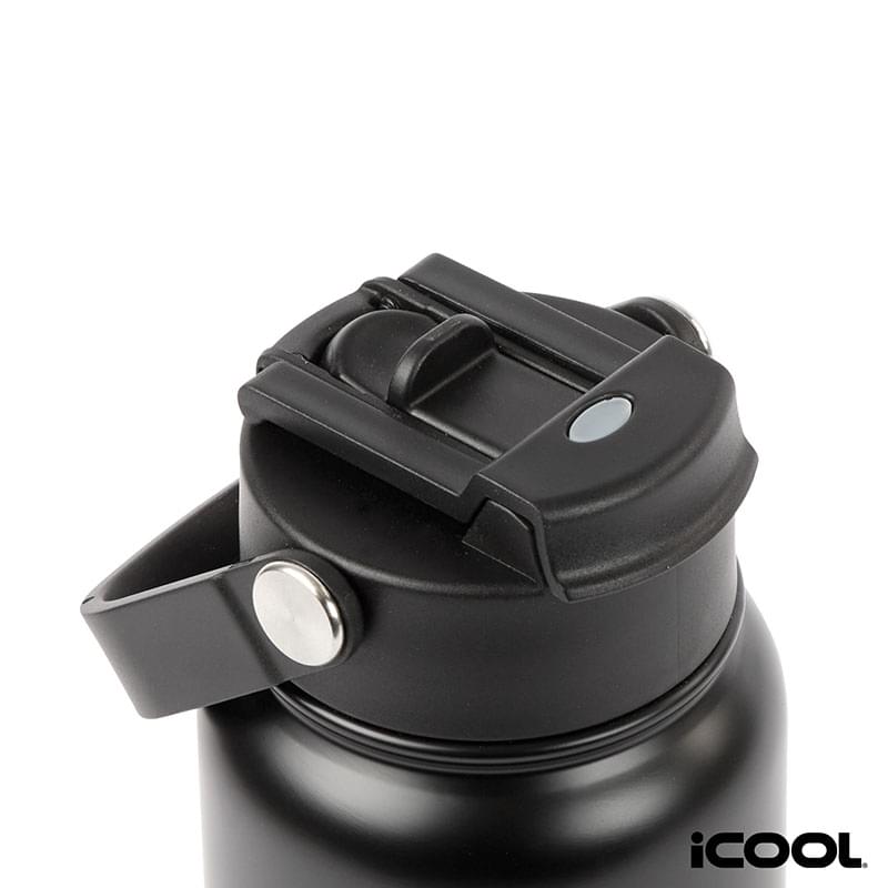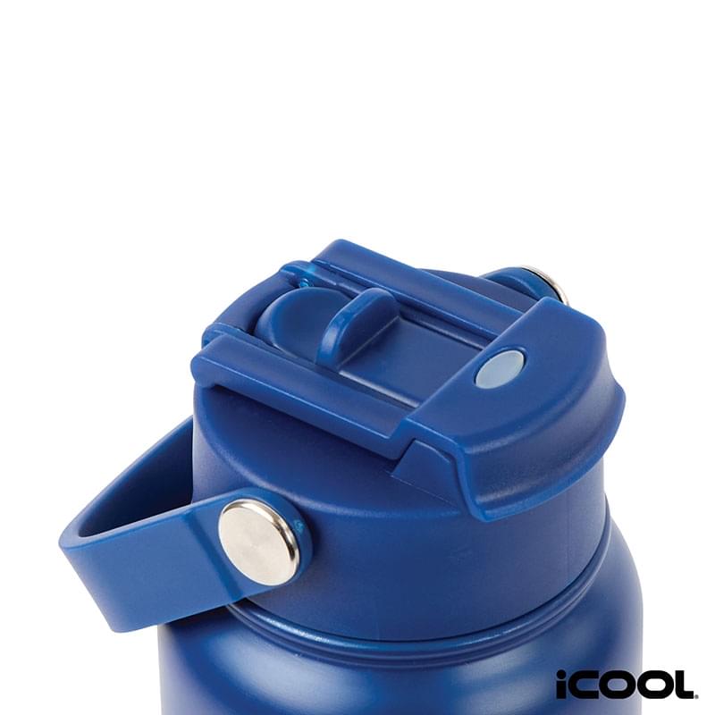 The iCOOL® Glenwood 35 oz. Water Bottle is a stylish and eco-friendly choice for those who value both design and sustainability. Crafted with an inner wall made from premium 18/8 post-consumer recycled stainless steel, this reusable bottle features double-wall vacuum insulation to keep your beverages at the perfect temperature, whether it's ice-cold coffee or freshly brewed tea. The screw-top lid offers two drinking options: a sipper spout for quick hydration and a flip straw spout for relaxed sipping, making it easy to stay refreshed while minimizing spills. The swing handle ensures a comfortable, secure grip while heading to the gym or navigating an adventurous road trip. BPA-free and FDA-compliant. A portion of all proceeds is donated to Shelter to Soldier™, a non-profit organization that rescues dogs to train as service animals for veterans in need.