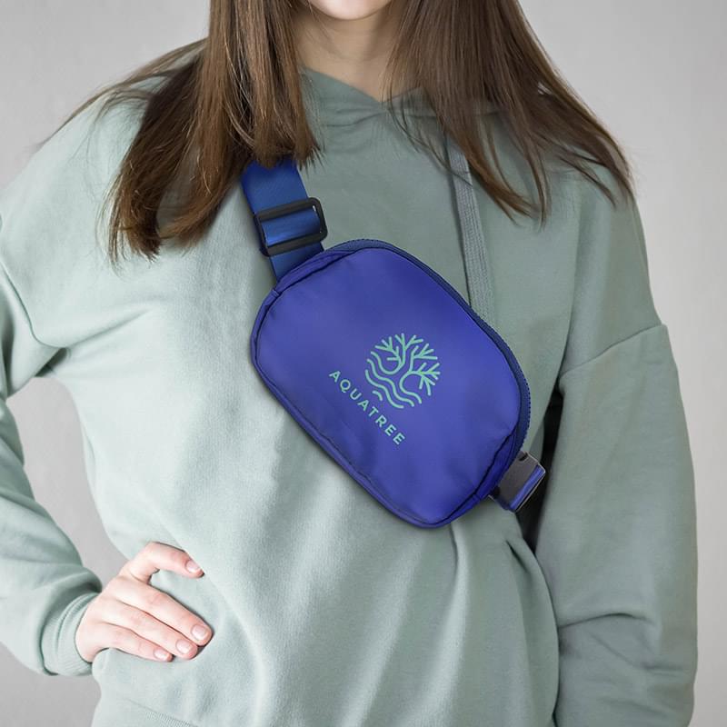 When on the go, reach for this incredibly convenient Everywhere Belt Bag. This handy accessory includes a zippered main compartment with interior mesh pockets as well as a back zippered pocket. The adjustable strap fits all and allows this Everywhere Bag to be worn as a fanny pack or a cross-body bag. Features a direct print front and center on the bag for maximum brand visibility. 100% nylon with a 210D polyester lining.