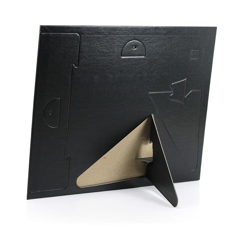 The simple narrow frame holds a single 8.5" x 11" Certificate. Black wrapped chipboard with a decorative gold foil border and dual easel back plus hanging tabs for either vertical or horizontal format. Prices include a one color gold foil-stamped imprint in a 6"w x 1/4"h area, please specify where imprint is to be on top or bottom. Clear acetate protector available, see options